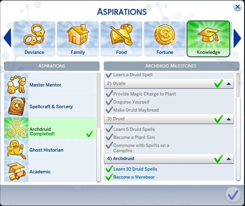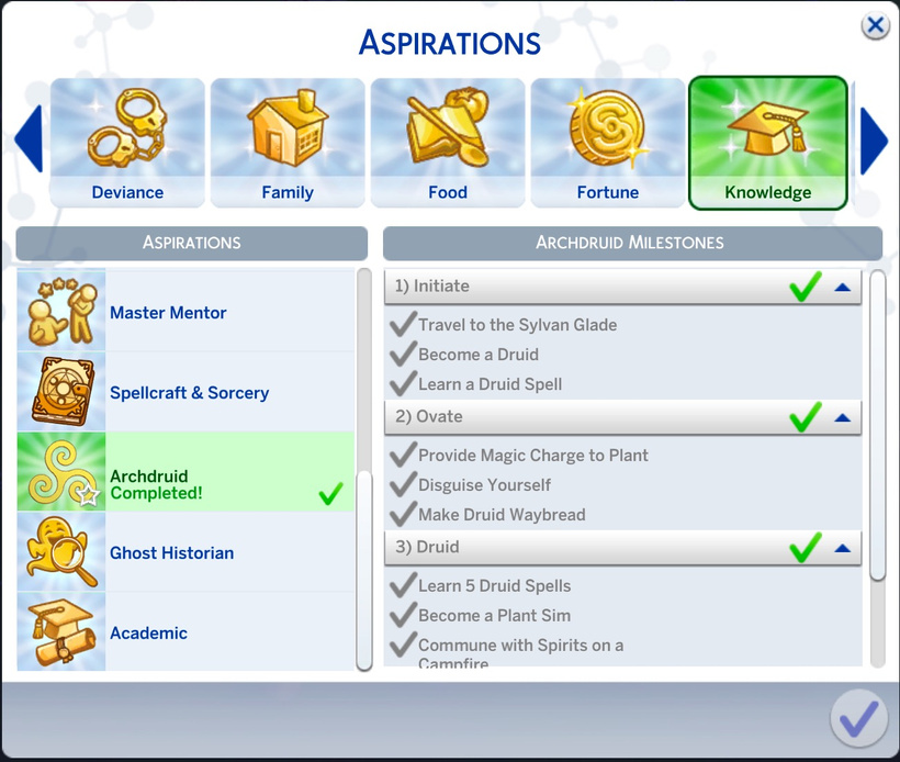 There is an Archdruid aspiration under the Knowledge track. Unlike the other aspirations in the knowledge track, the primary trait is Animal Attraction. If you complete the aspiration, you get an Archdruid trait that enables additional interactions, knowledge of the Rite of Ascension spell for Druids, and a portable stone altar that you can use to conduct your own ceremonies.