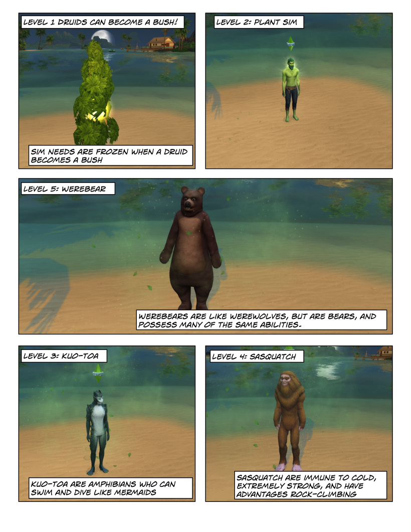 - Level 4: Druids can become a Sasquatch, which are immune from cold, have vampire-like strength and can run very quickly when they want to. Sasquatch also get rock climbing bonuses.
