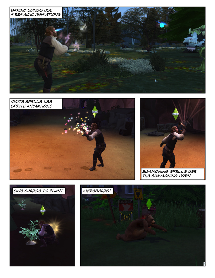 Spells from different orders are cast differently. Bard spells, for example, often rely at least partially on a Sim’s singing or acting skills.